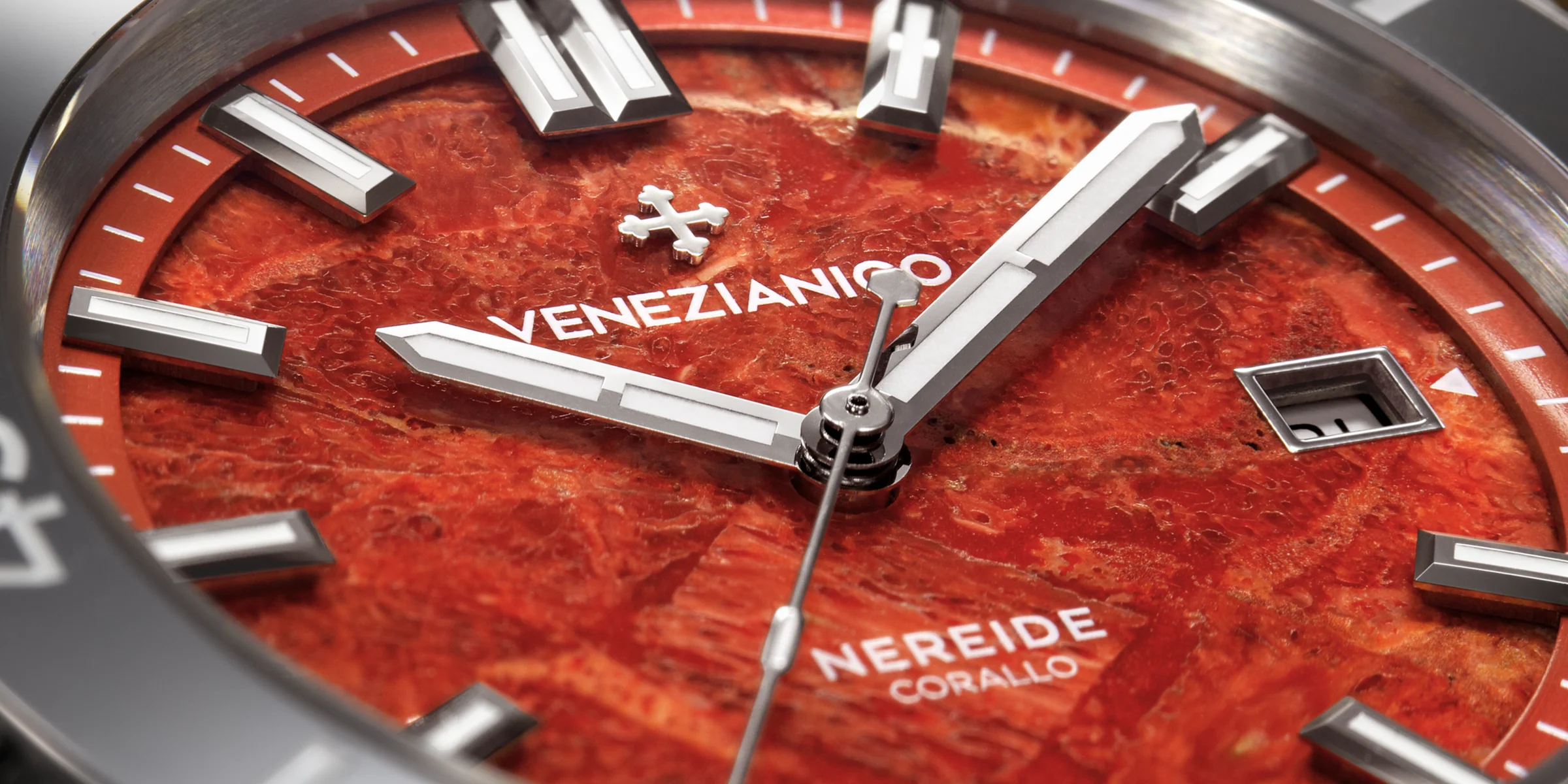 The Nereide Corallo pays homage to Venice’s historic coral trade, where the vibrant red gemstone symbolized wealth, protection, and connection between cultures across the Mediterranean. Each dial is a work of art, created through a unique mosaic composition technique that assembles natural coral fragments into a cohesive, richly textured surface—preserving the individuality and organic beauty of the material. This handcrafted coral dial, polished to a jewel-like finish, transforms every watch into a one-of-a-kind piece that tells the story of the sea and centuries of Venetian artistry. Powered by the Sellita SW200-1 automatic movement, the Nereide Corallo combines aesthetic mastery with Swiss precision. Its skeletonized rotor, adorned with Côtes de Genève finishing and 3N gold treatment, reflects the light with the same brilliance as the coral dial it powers—a perfect balance of art and engineering. Wearing the Nereide Corallo is more than an expression of style; it’s a celebration of nature, heritage, and the enduring bond between Venice and the sea.